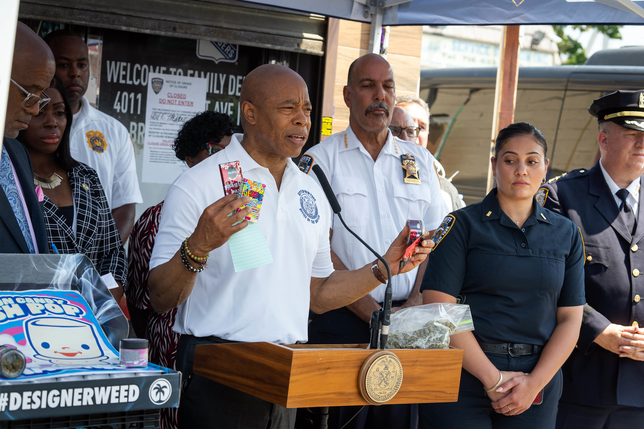 New York City officials have ramped up their efforts to combat illegal cannabis distribution, with Mayor Eric Adams and Sheriff Anthony Miranda announcing the shutdown of two unlicensed shops in the Bronx.